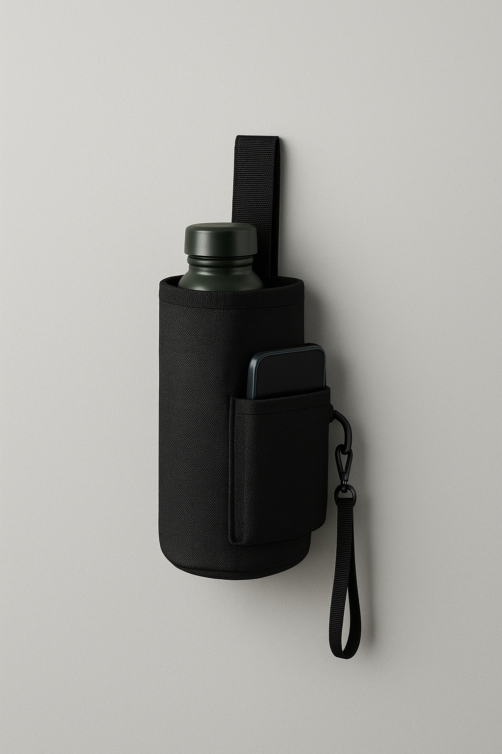 Nett og fjölnota vatnsflöskutaska hönnuð til að halda flöskunni þinni og síma á aðgengilegum stað og innan handa allan daginn. Taskan er létt, fyrirferðarlítil og passar fyrir flestar standard vatnsflöskur og síma